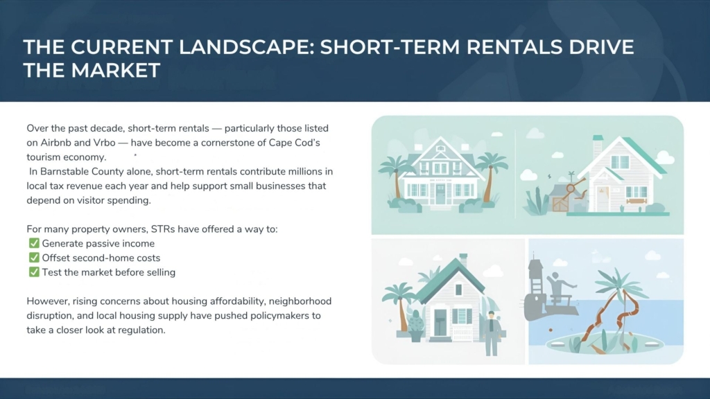 Cape Cod’s real estate market has always been a magnet for investors, vacation homeowners, and seasonal visitors. But in 2025, that landscape is shifting — and fast. The ongoing debate over new short-term rental (STR) regulations in towns across the Cape, including Barnstable, Provincetown, and Orleans, could reshape how investors buy, rent, and profit from local properties.